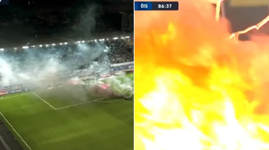 İsveçdə azarkeşlər süni ot örtüyünü yandırdılar